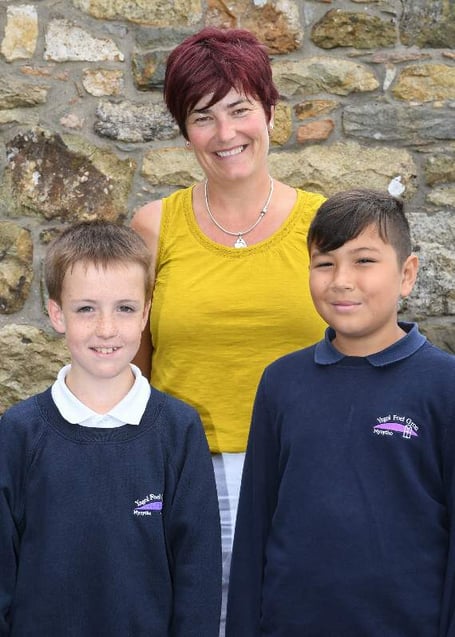 Ellis Williams (left) and Jack Thomas will be moving on to Ysgol Botwnnog, Pwllheli, whilst headteacher Judith Owen will be moving to Ysgol Gynradd Rhosgadfan as their new headteacher.